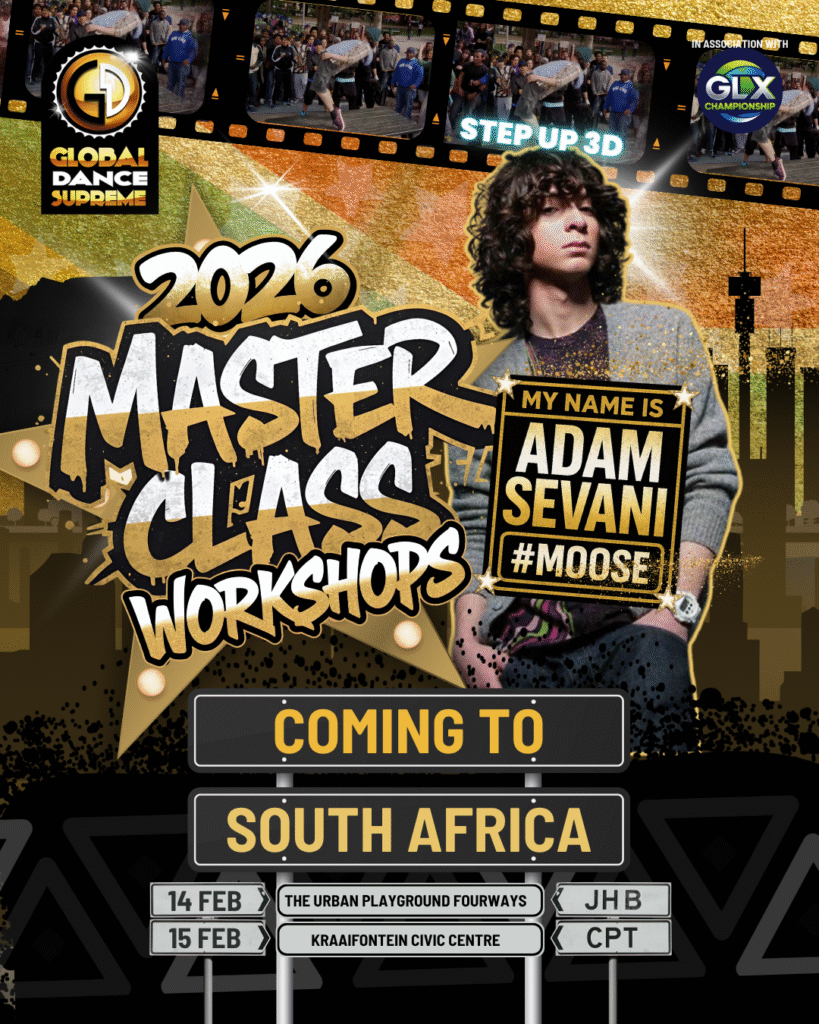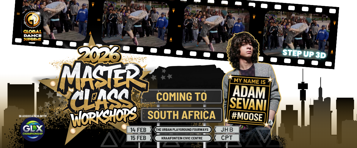 WORKSHOP INFORMATION Adam Sevani - Johannesburg Workshop - 14 Feb 2026 Add to cart Adam Sevani - Cape Town Workshop - 15 Feb 2026 Add to cart South Africa’s Supreme Month of Dance SEPTEMBER Welcome To Global Dance Supreme 9 PROVINCES COMPETE FOR DUBAI