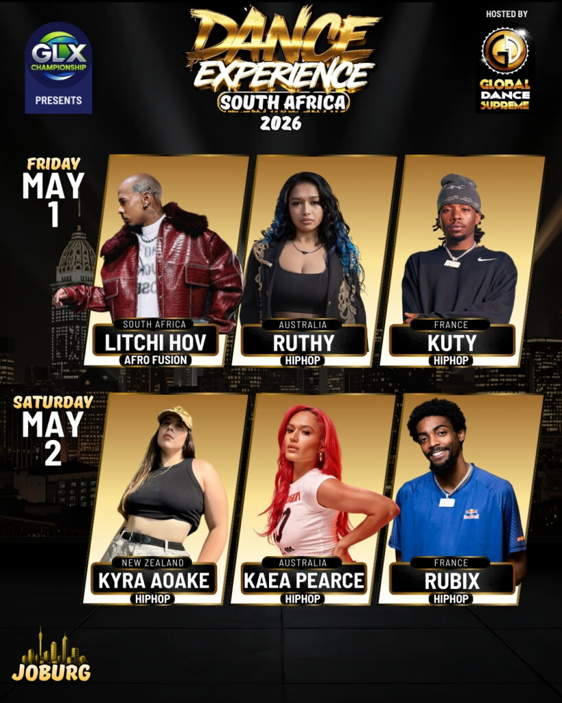 Get ready for the ultimate dance weekend. The GLX Dance Experience is a 2-day elite dance immersion delivering international-level choreography and professional training right here in South Africa. We are bringing six international powerhouse choreographers to Johannesburg for two days of sweat, skill, and high-performance development.