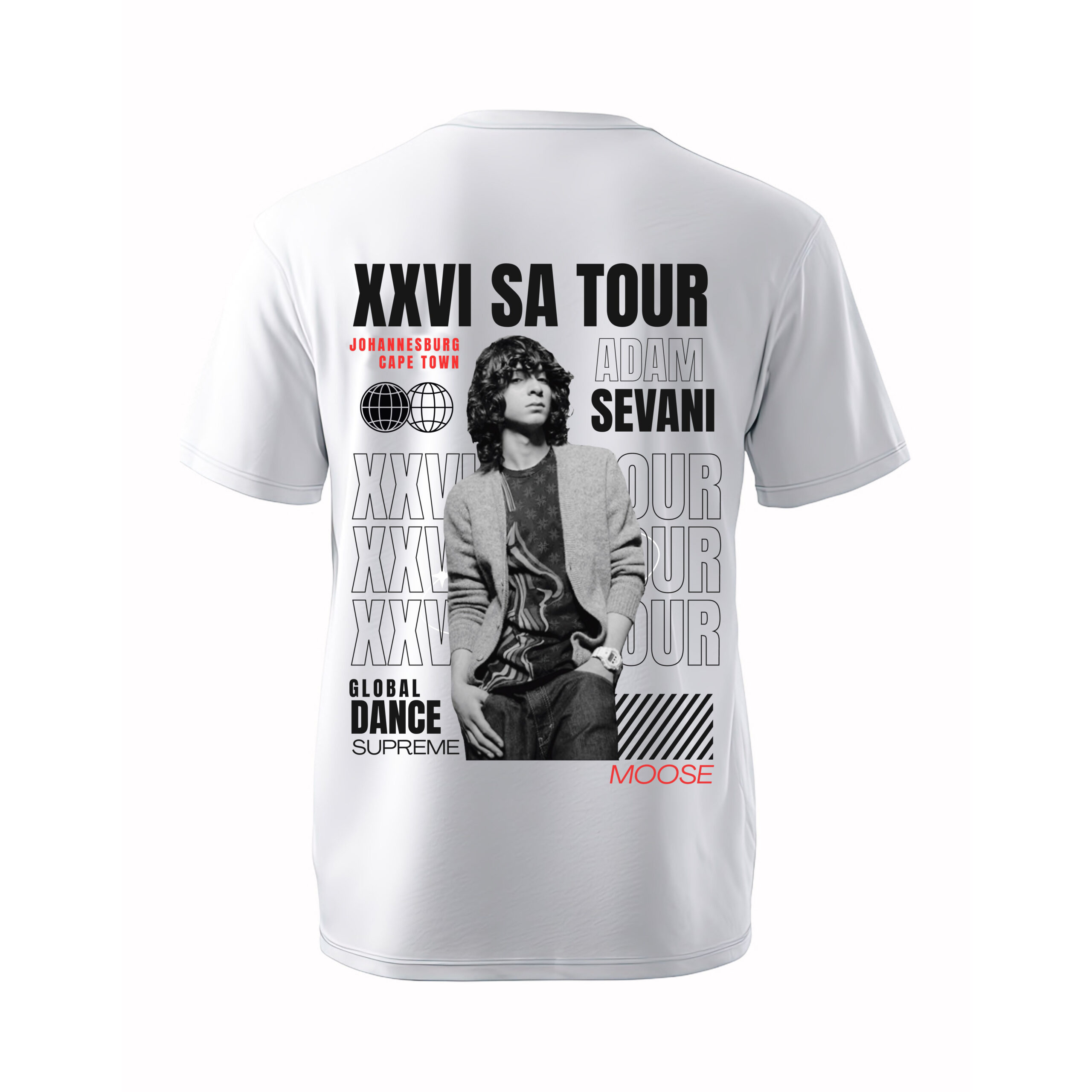 Limited edition Adam Sevani (MOOSE) workshop Double Print White T-shirt, created exclusively for the South Africa 2026 Tour.